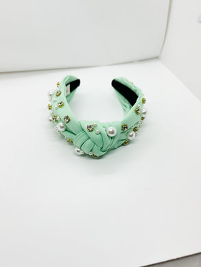 Mint Green with pearl and Clear Stones