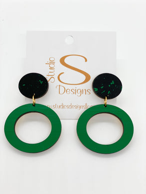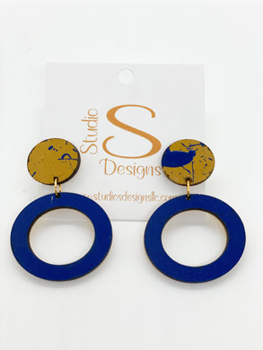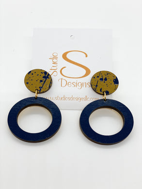 Our earrings are cut from a piece of hand painted light weight maple wood. Each piece is unique in that it may vary slightly in pattern depending on how it is cut. All post and ear wires are gold plated and nickel free.