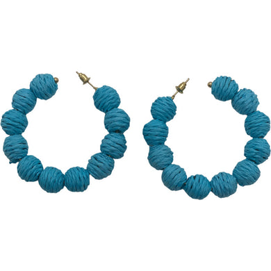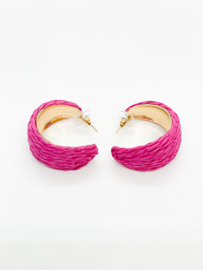 Raffia Ball Closed Hoop Earrings-Hot Pink